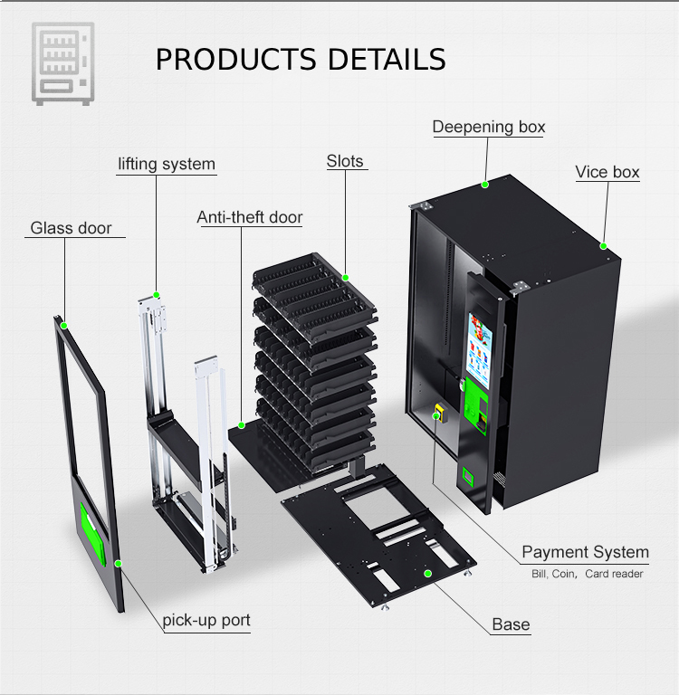 This machine is an excellent choice for gyms, cafés, offices, hospitals, universities, airports, and shopping malls that want to provide healthy snacks, meals, or drinks in a smart and efficient way.